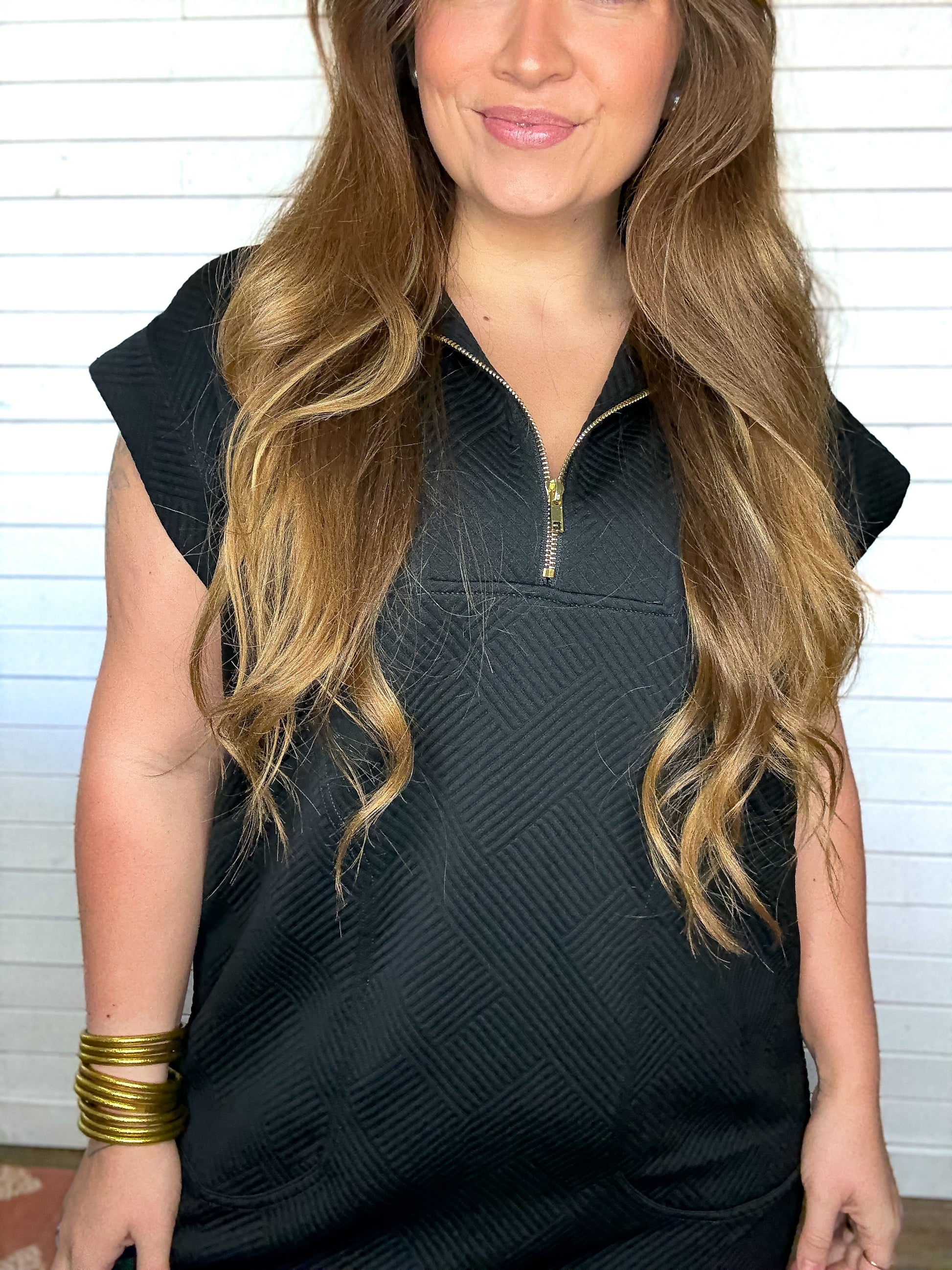 Zenana Black Quarter Zip Jacquard Dress