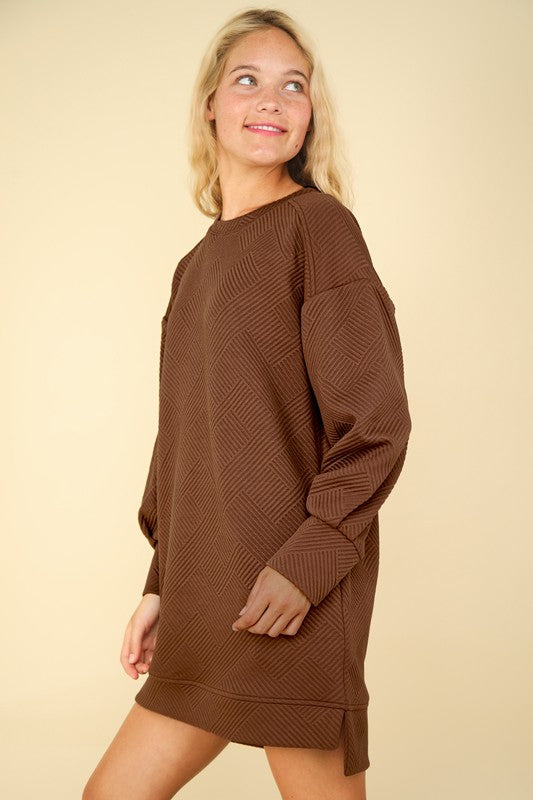 Zenana Brown Quarter Zip Jacquard Dress